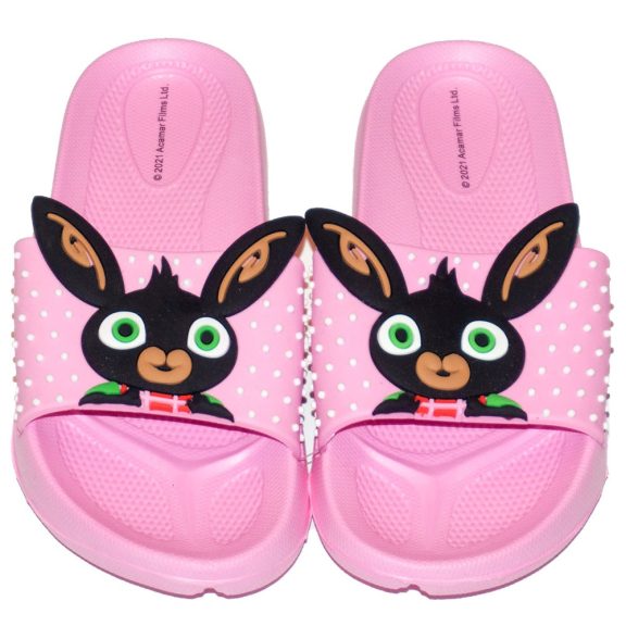 Bing nyuszi kislány fürdőpapucs Binggel díszítve – Vidám és kényelmes nyári papucs kislányoknak. Könnyű, csúszásmentes talppal és puha pánttal, ideális strandoláshoz, uszodába vagy otthoni használatra.