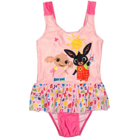 Bing nyuszis kislány fürdőruha Bing, Hoppity és Szula mintával és aranyos szoknyás résszel díszítve.
