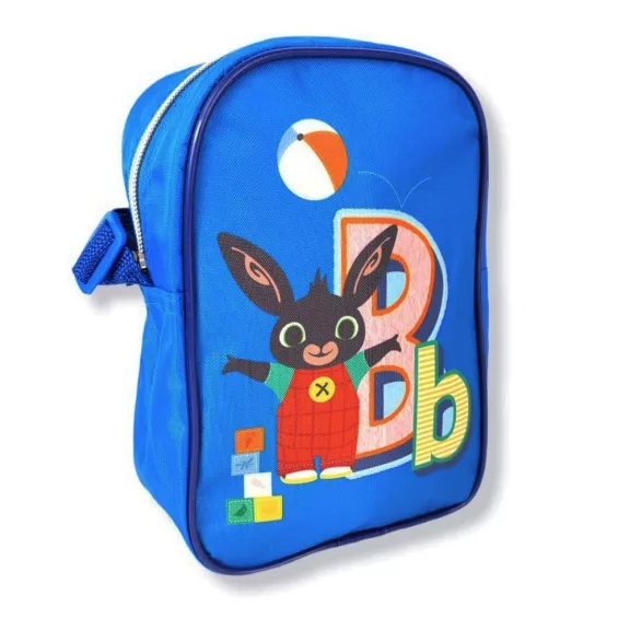 Bing nyuszis válltáska kisfiúknak Binggel díszítve.Egy zippzáros rész, állítható vállpánt.Mérete: 21,5* 15,5*8 cm.