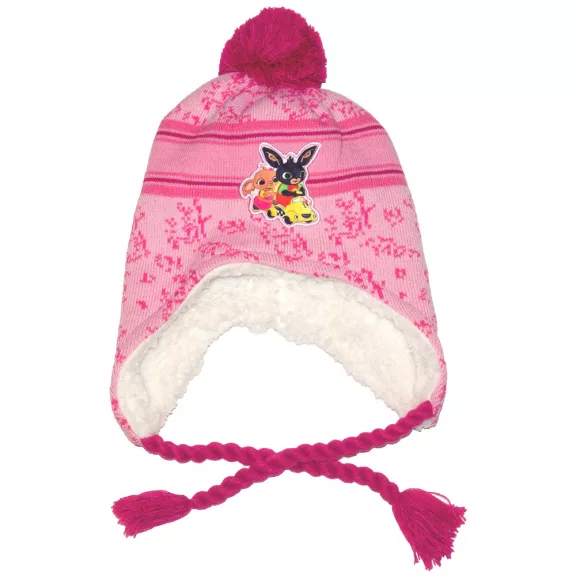 Bing nyuszis vastag kötött sapka kislányoknak bojttal.