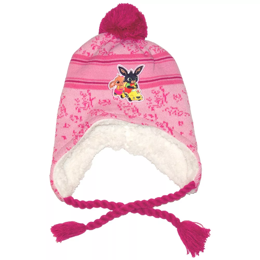 Bing nyuszis vastag kötött sapka kislányoknak bojttal.Kívül kötött belül puha szőrmés, jó meleg perui sapka.