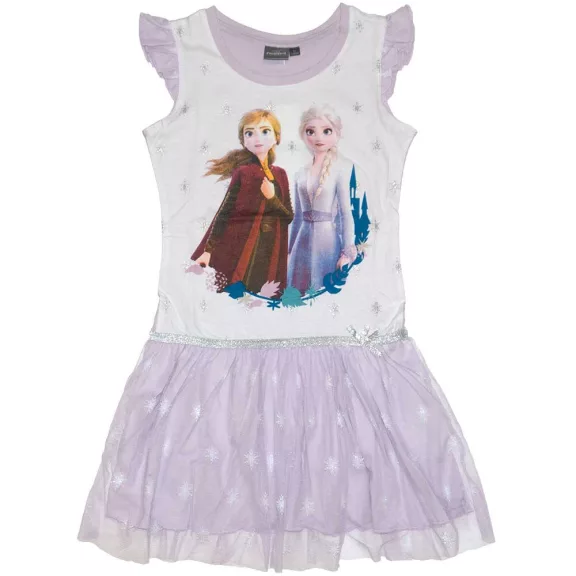 Jégvarázs nyári ruha kislányoknak tüllel díszítve lila színben.Frozen 2 meséből Anna és Elsa hercegnő mintás ruha kényelmes nyári viselet.