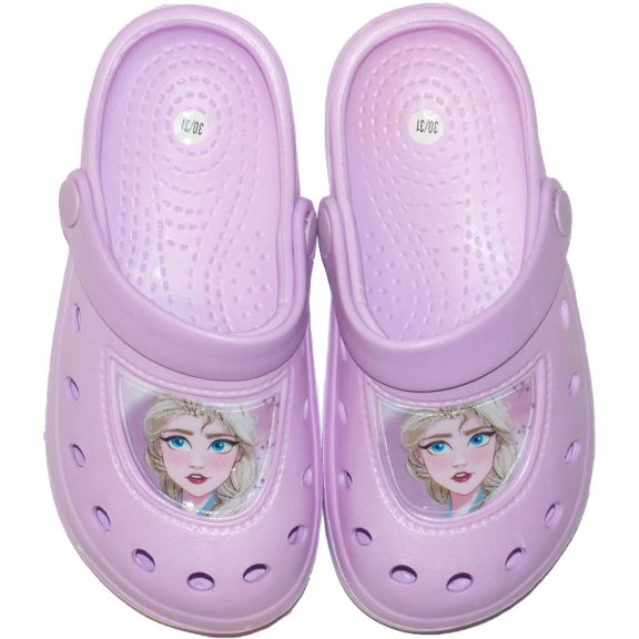Jégvarázs kislány papucs lila színben 22-33-mas méretig.Kényelmes gyerek klumpa, clog kertbe, strandra, utcára Frozen rajongóknak!