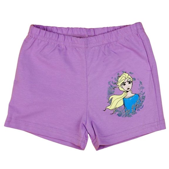 Jégvarázs rövidnadrág lila színben Elsa hercegnővel dísztíve.Vékony pamut sort gumis derékkal, egyik oldalán zsebbel.