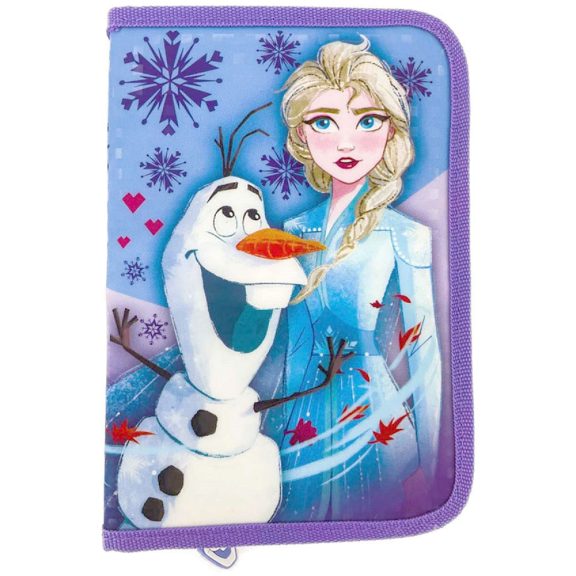 Jégvarázsos tolltartó kislányoknak Elsa, Anna és Olaf mintával díszítve lila színben.Cipzárral záródik, belül két kihajtható rész, sok ceruzahellyel.Mérete: 21 cm*14 cm*3,5 cm.
