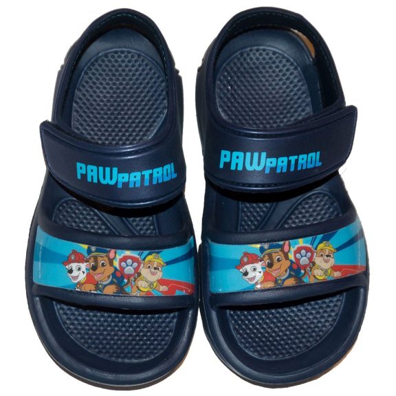 Mancs Őrjárat tépőzáras szandál sötétkék színben Chase, Rubble és Marshall kutya mintával.Kényelmes gyerek szandál kertbe, strandra, utcára Paw Patrol rajongóknak!