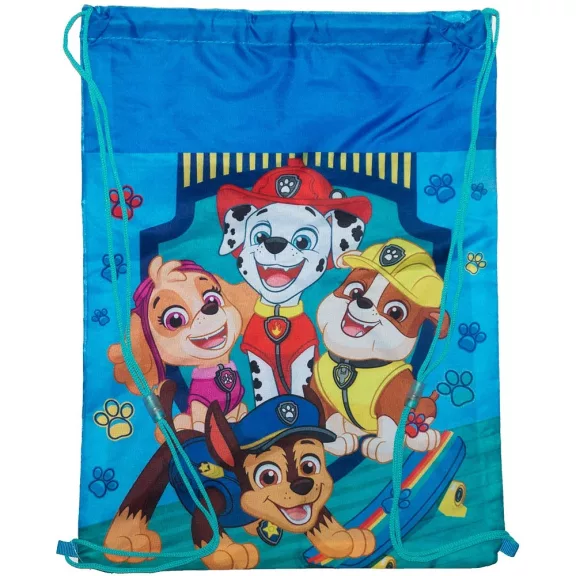 Mancs Őrjárat tornazsák kisfiúknak, Chase, Rubble, Marshall és Sky kutyussal díszítve.Mérete: 30*42 cm.Anyaga: 100 % poliészter.
