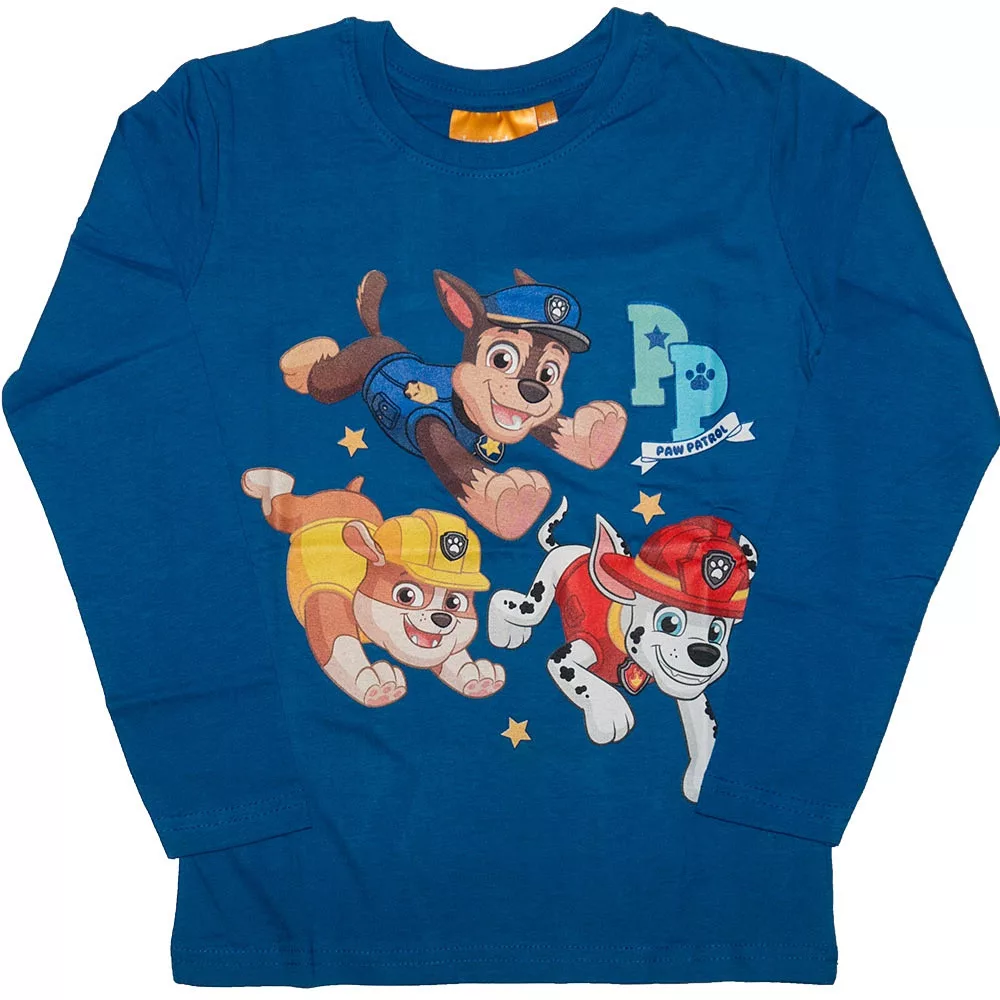 Mancsos hosszú ujjú felső kisfiúknak kék színben Chase, Marshall és Rubble mintával.