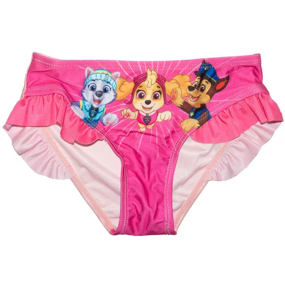 Mancsos fürdőbugyi kislányoknak Sky, Everst és Chase kutya mintával.A bugyi hátulja egyszínű rózsaszín, oldalán szép kis fodorral díszítve.98-128-as méretig kapható.