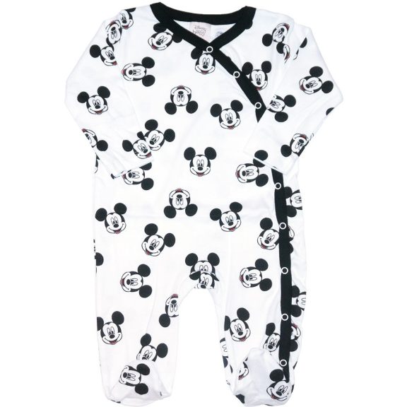 Mickey egeres pamut rugdalózó fehér alapon fekete Mickey Mouse fejekkel.