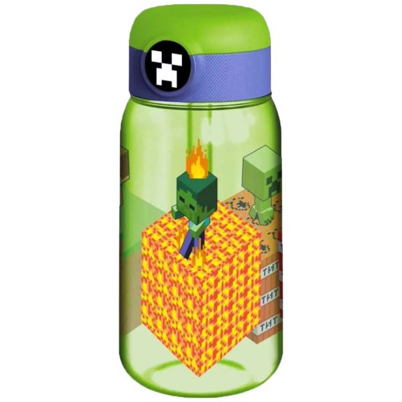 Minecraft 510 ml-es nyomógombos kulacs szívószállal.