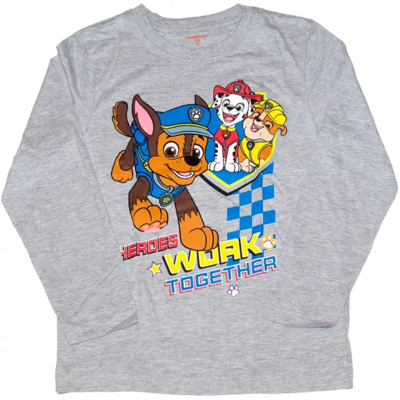 Kényelmes és aranyos hosszúujjú póló kisfiúknak, a népszerű Mancs Őrjárat mese rajongóinak! A felsőt Chase és Marshall vidám mintája díszíti, mely garantáltan a gyerekek kedvence lesz. A pamut–poliészter anyagkeverék puha, jól szellőző, mégis formatartó viseletet biztosít.