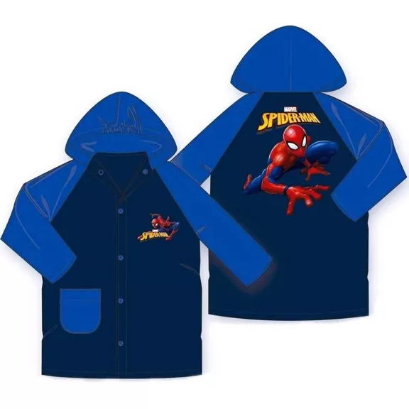 A Pókemberes esőkabát sötétkék színben ideális védelem a nedves időjárás ellen. Ez a praktikus és stílusos kabát Spiderman rajongóinak szól, akik még esős napokon is készen állnak a kalandokra. A kabát vízálló anyagból készült, és Pókember karakterrel van díszítve.