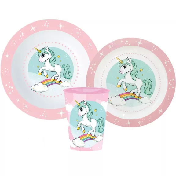 Unikornis mikrózható műanyag étkészlet kislányoknak.