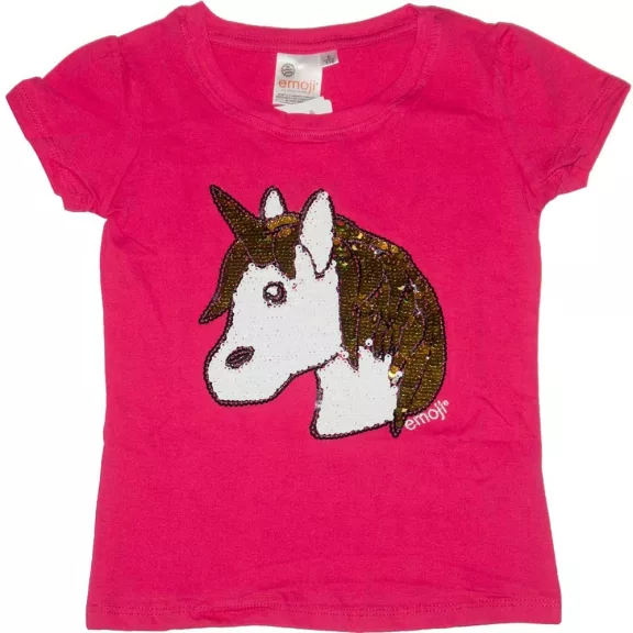 Unikornis mintás simogatós flitteres rövid ujjú póló kislányoknak pink színben.Anyaga 100% pamut.