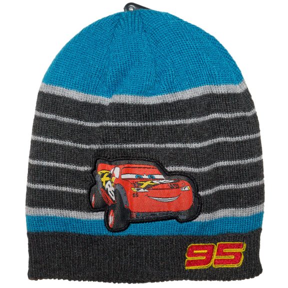 Verda kötött sapka kisfiúknak Villám McQueen mintával díszítve.