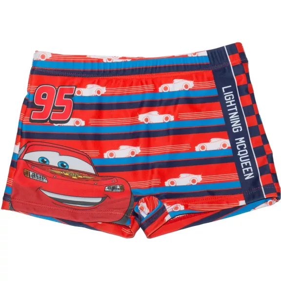 Verdás csíkos fürdőboxer piros színben Villám McQueen mintával.
