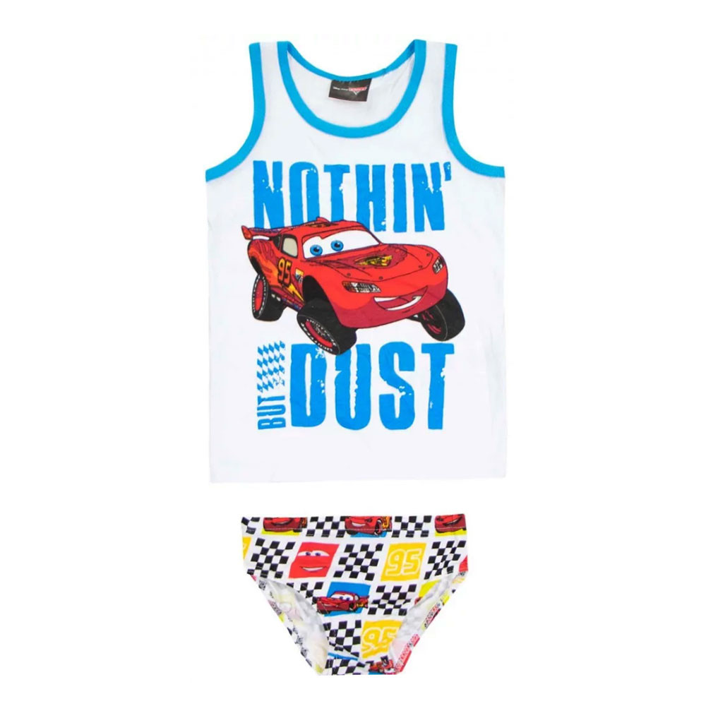 Kényelmes és praktikus fehérnemű szett a Disney Verdák mese rajongóinak! A szett egy trikóból és egy alsónadrágból áll, amelyeket vidám Villám McQueen minta díszít.